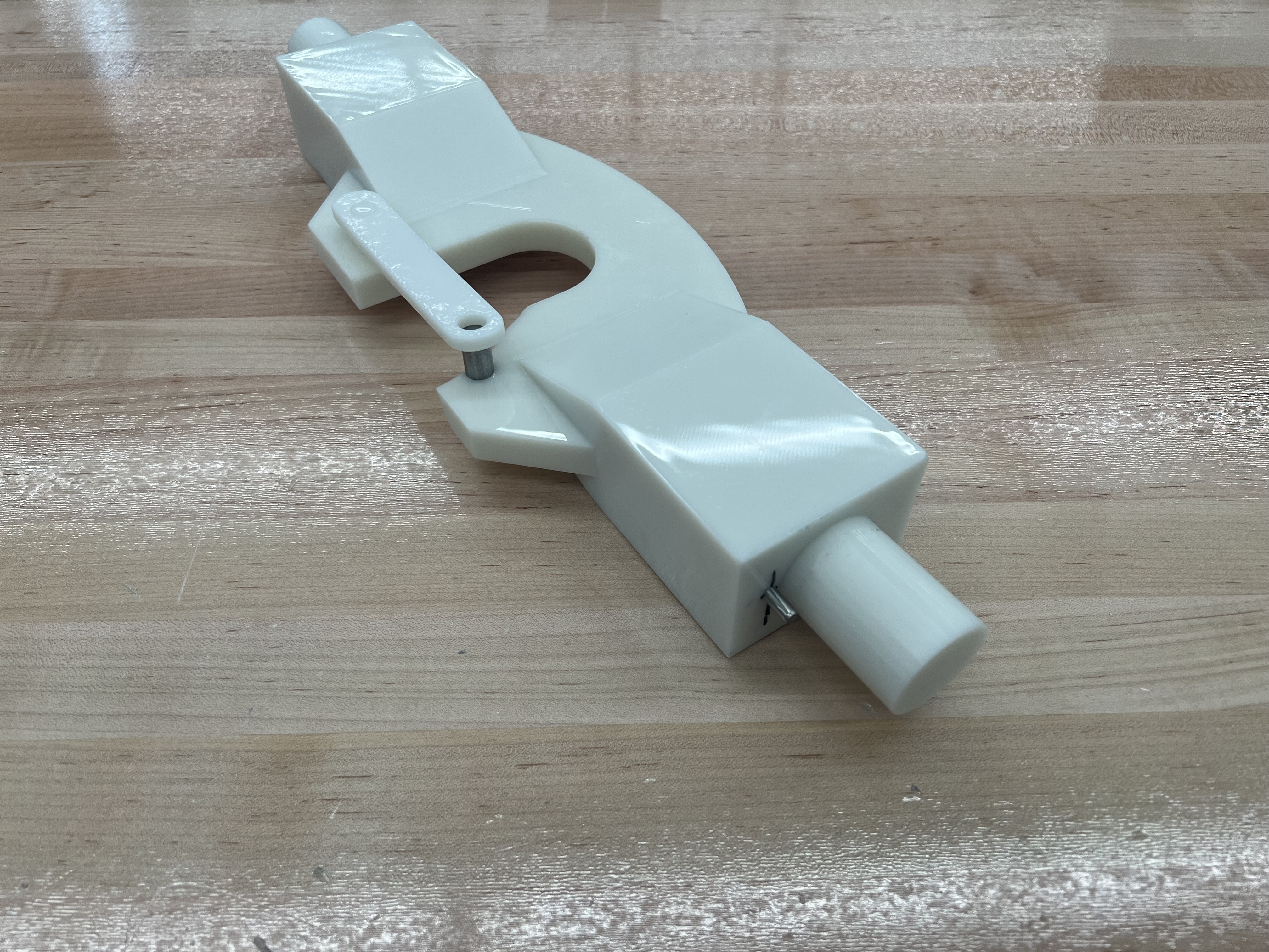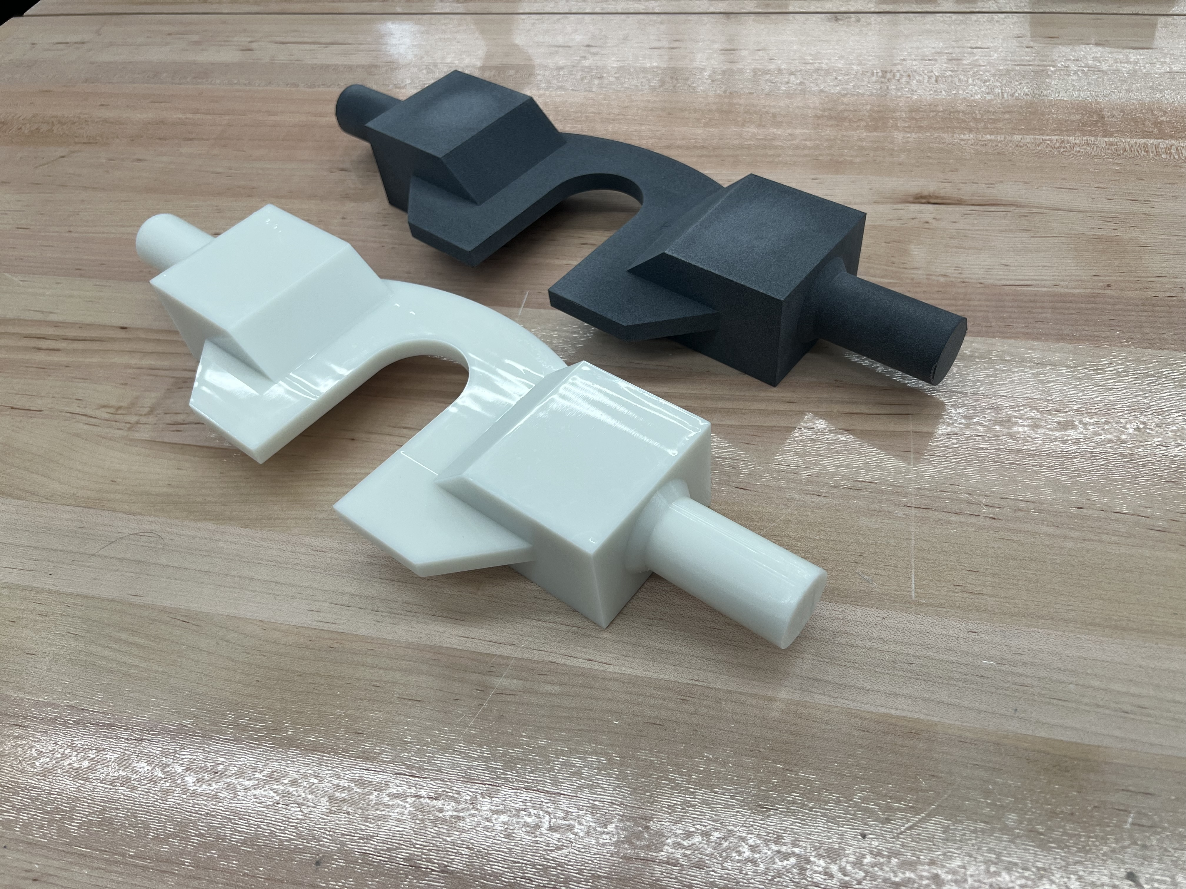 To improve the safety and efficiency of loading powder into additive manufacturing machines, I designed a custom fixture in Siemens NX that securely latches onto powder bottles, allowing them to be lifted and loaded using a mechanical hoist. I conducted static simulations of the fixture using Ntop to validate its structural integrity under load. The design was prototyped using SLA 3D printing and refined through multiple iterations to ensure proper fit and function. After successful testing with the additive manufacturing team and receiving final approval, I had the final design CNC machined for operational use.